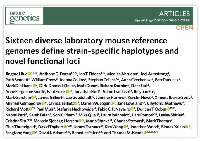 7. Lilue, J et al. (2018). Multiple laboratory mouse reference genomes define strain specific haplotypes and novel functional loci. Nature Genetics. Published online DOI:10.1038/s41588-018-0223-8